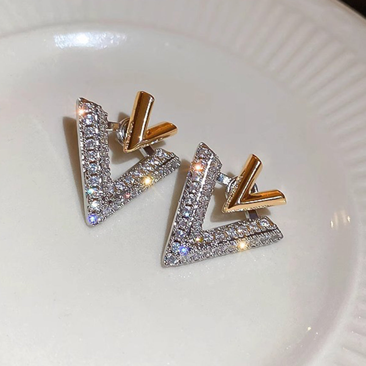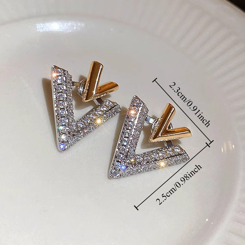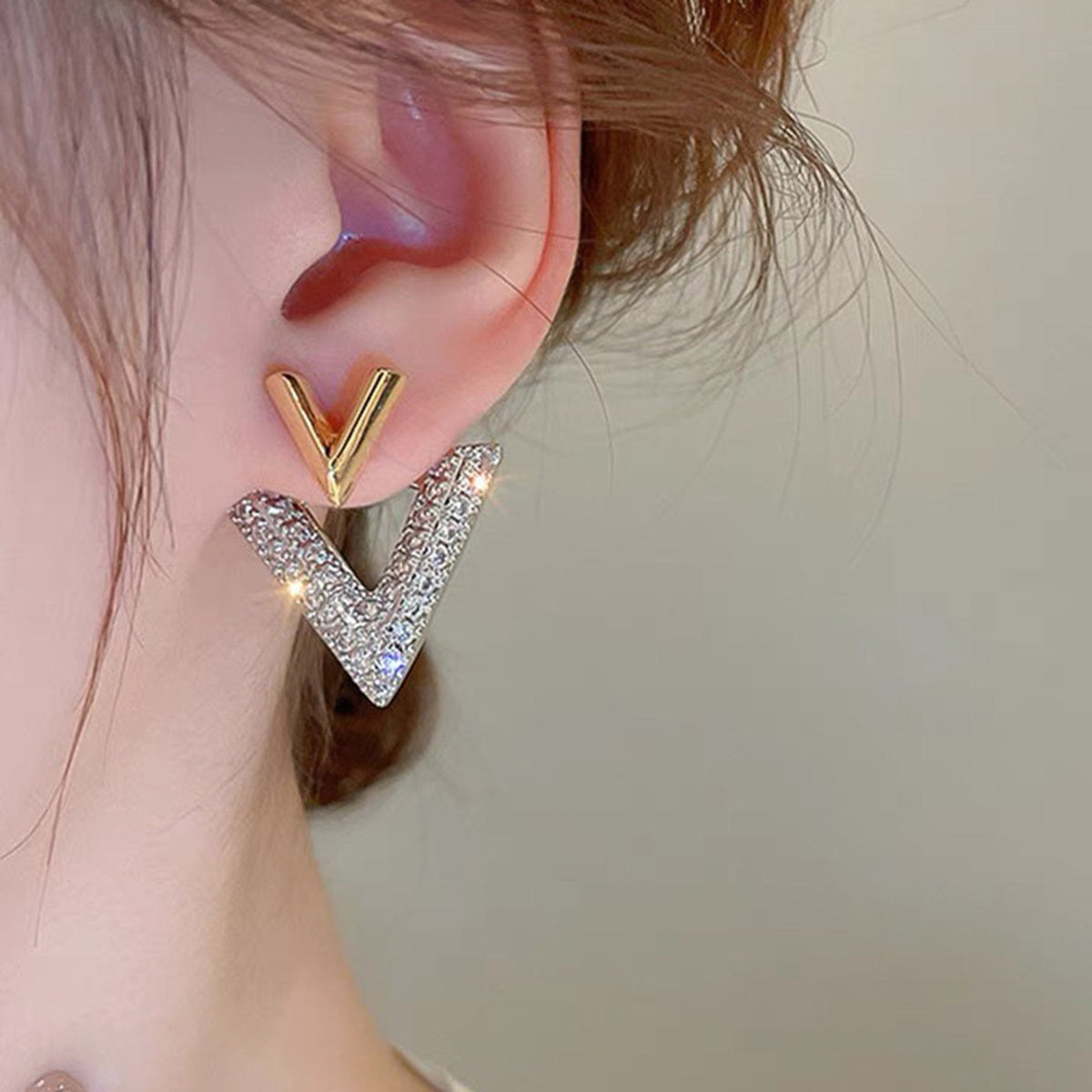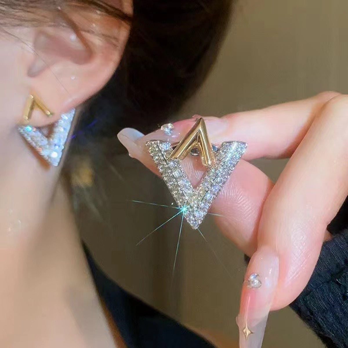 Delicate V-shaped Stud Earrings Inlaid Shiny Zirconia Elegant Simple Versatile Ear Accessories
