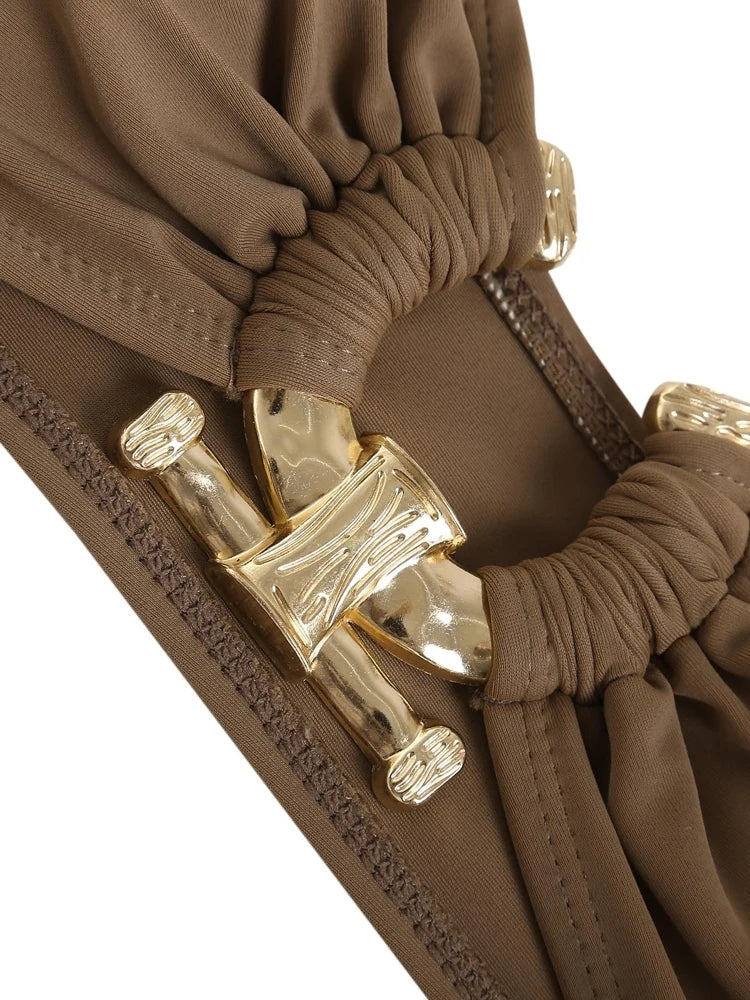 • Sexy low-rise bottoms and a top with a chic ring detail — pure style statement